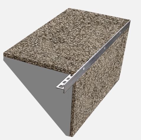 Ukončovací profil T výšky 10 mm nebo 12 mm se používá k ukončení hrany kamenných koberců a zajištění správného odvodu vody. Tento prvek je ve spodní části prodloužen a tím zajistí překrytí navazující vodorovné konstrukce. Lze jej využít např. na hranách schodu a ukončení teras či balkónů.