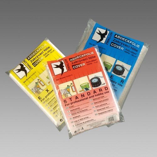 Pro vnitřní použití v domácnostech při malování nebo lakýrnických pracích. Chrání před barvou, vlhkem a prachem. Hrubší LDPE fólie Extra a Super, slouží pro zakrývání stavebních strojů, palet se stavebním materiálem, např. cementem, cihlami apod.