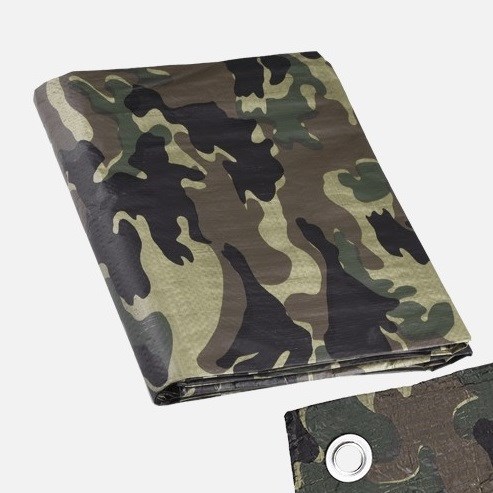 DEN BRAVEN Zakrývací plachta s kovovými oky MASKOVACÍ 6*10m - DOPRODEJ