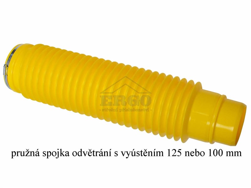ERGO - odvětrávací komplet obsahuje odvětrávací rouru, základní odvětrávací tašku, lapač kondenzátu, napojovací límec a pružnou spojku odvětrání o délce 650 mm.