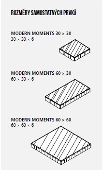 Nature MOMENTS: Reliéfní povrch s jemnou přírodní strukturou kamene. Atraktivní barevná provedení: Moonlight, Marble a Honey. Vysokopevnostní vibrolisovaná dvouvrstvá betonová dlažba splňující normu ČSN EN 1339.