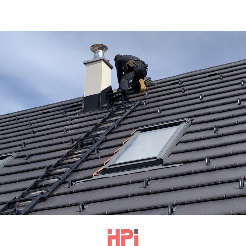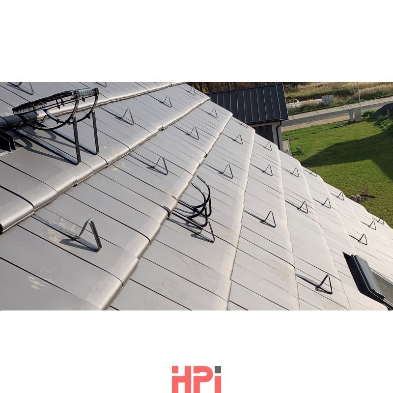 Bezpečnostní střešní hák typ A slouží jako kotvící bod prostředků proti pádu, nebo pro zavěšení žebříku. Je určen pro zachycení jedné osoby s tlumičem pádu (podle EN 355). Doporučená montáž je pomocí tří šroubů M8 zajištěných matkou s bezpečnostní podložkou skrz kontralať a krokev