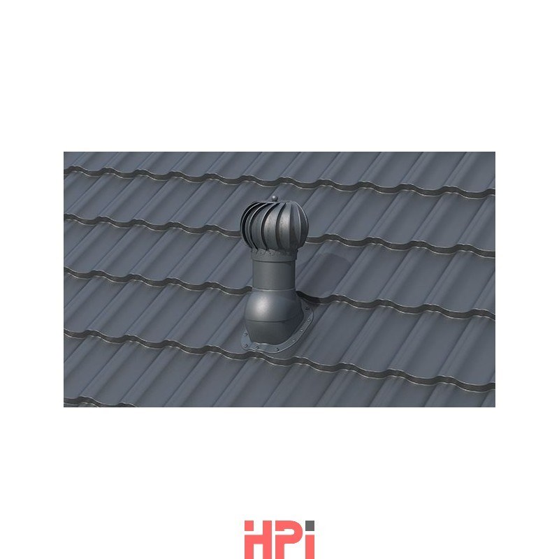 Rotační odvětrávací set (RS) je určen pro profilované plechové krytiny s výškou vlny 25 mm. Slouží k odvětrání střešního pláště, půdních prostor, digestoří, sklepů, WC, koupelen apod. Rotační hlavice o průměru 150 mm zvyšuje větrací kapacitu vytvářením stálého podtlaku v potrubí. Set je vyroben z UV stabilizovaného polypropylenu (PP). Pro zajištění chodu i v těch nejtěžších podmínkách je hlavice opatřena otočným ocelovým mechanismem uloženým do dvojitých kuličkových ložisek v olejové lázni. Integrované butylové těsnění zajišťuje vodotěsnost mezi krytinou a větrací taškou. Vruty pro montáž jsou součástí balení. Určeno pro šikmé střechy se sklonem od 5° do 45°.