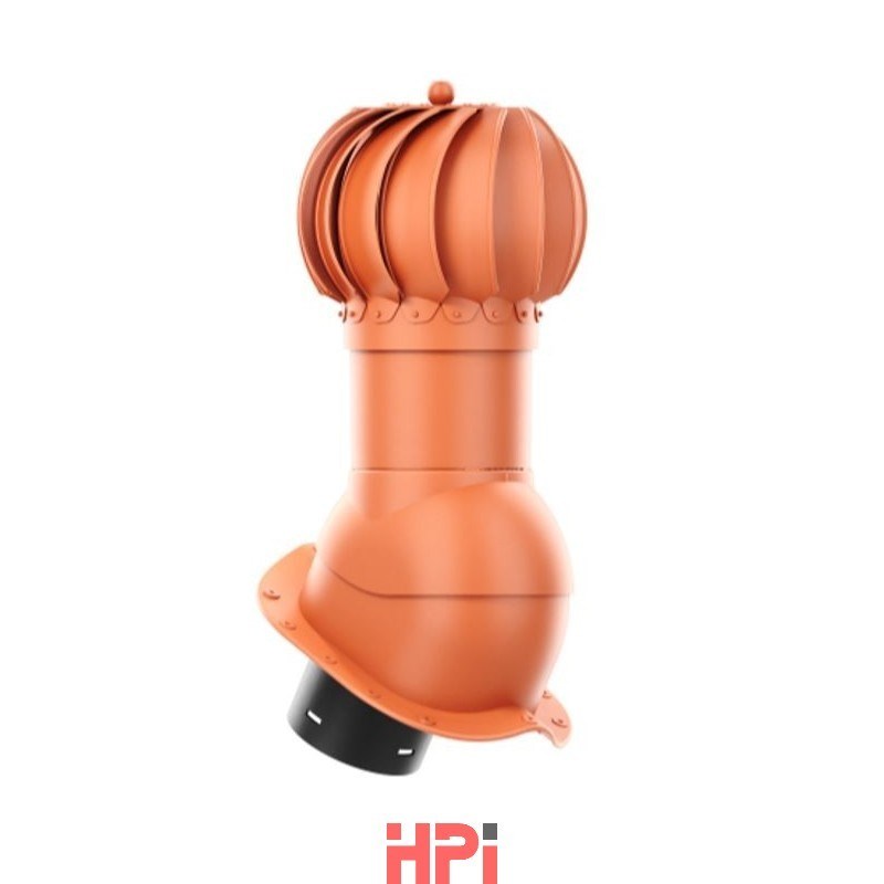 Rotační odvětrávací set je určen pro profilované plechové krytiny s výškou vlny 30 mm. Slouží k odvětrání střešního pláště, půdních prostor, digestoří, sklepů, WC, koupelen apod. Rotační hlavice o průměru 150 mm zvyšuje větrací kapacitu vytvářením stálého podtlaku v potrubí. Set je vyroben z UV stabilizovaného polypropylenu (PP). Pro zajištění chodu i v těch nejtěžších podmínkách je hlavice opatřena otočným ocelovým mechanismem uloženým do dvojitých kuličkových ložisek v olejové lázni. Integrované butylové těsnění zajišťuje vodotěsnost mezi krytinou a větrací taškou. Vruty pro montáž jsou součástí balení. Určeno pro šikmé střechy se sklonem od 5° do 45°.