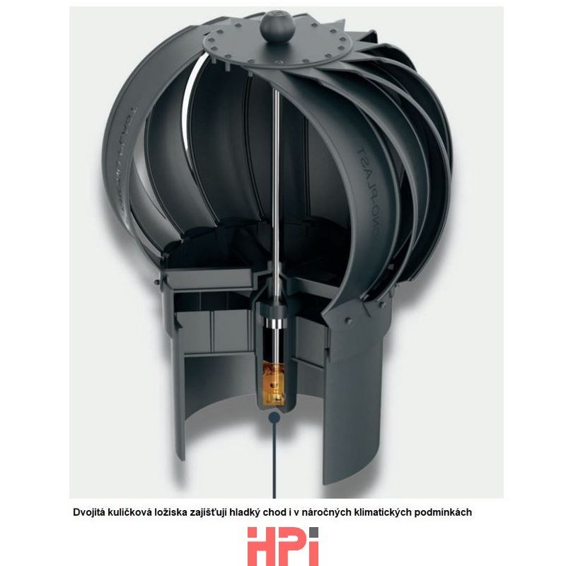 Rotační odvětrávací set je určen pro betonové krytiny Benders Mecklenburger, Bramac Classic (Alpská), KMB Beta, Betonpres - nové typy. Slouží k odvětrání střešního pláště, půdních prostor, digestoří, sklepů, WC, koupelen apod. Rotační hlavice o průměru 150 mm zvyšuje větrací kapacitu vytvářením stálého podtlaku v potrubí. Set je vyroben z UV stabilizovaného polypropylenu (PP). Pro zajištění chodu i v těch nejtěžších podmínkách je hlavice opatřena otočným ocelovým mechanismem uloženým do dvojitých kuličkových ložisek v olejové lázni. Integrované butylové těsnění zajišťuje vodotěsnost mezi krytinou a větrací taškou. Vruty pro montáž jsou součástí balení. Určeno pro šikmé střechy se sklonem od 5° do 45°.