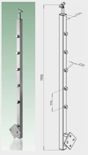 - pata sloupku boční hranatá, uložení madla je v ose sloupku