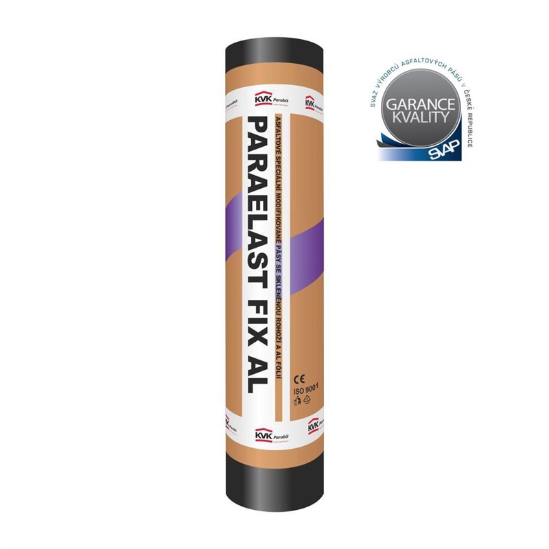 Paraelast FIX AL je samolepící pás a používá se hlavně jako vysoce účinná parozábrana ve skladbách střech. Dále je určený jako protiradonová zábrana ve všech pásmech radonového zatížení pro nejnáročnější případy a jako hydroizolace spodních staveb proti zemní vlhkosti.