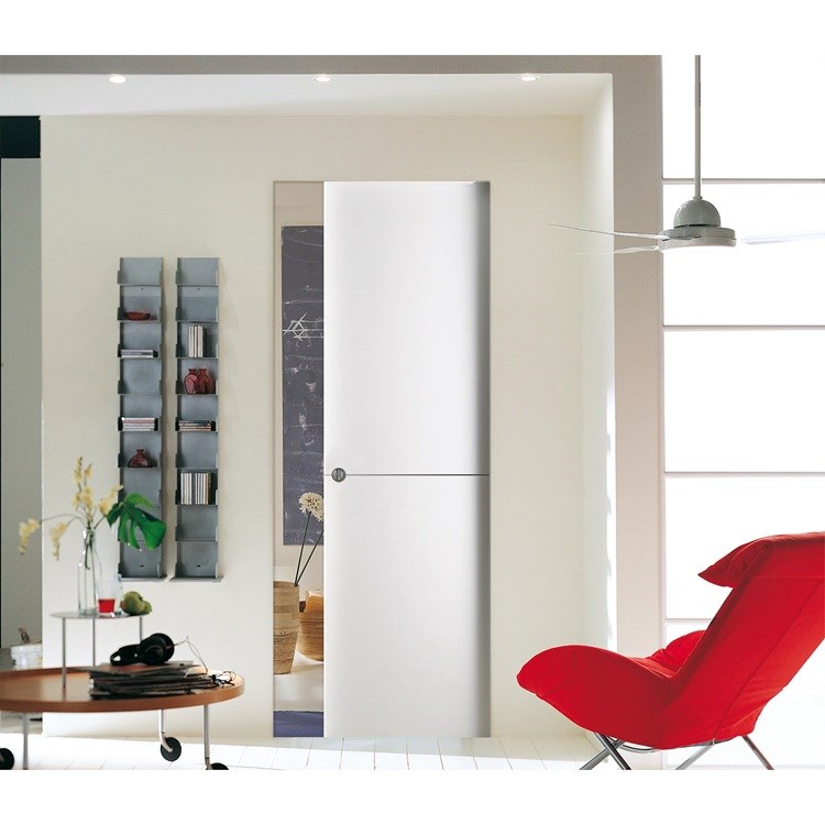 Bezobložkové stavební pouzdro je ohraničeno "neviditelným" hlinikovým rámečkem (viz foto), ke kterému je vyhlazena omítka nebo sádrokarton - jednoduché přetření profilů stejnou barvou, jaká byla použita na stěně, dotváří estetický výsledek. Jedná se o patent firmy Scrigno.