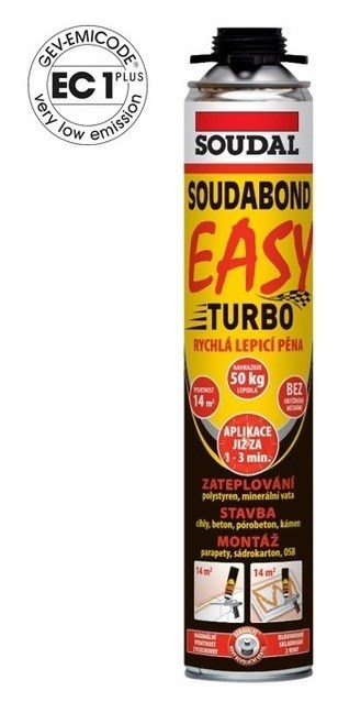 Popis: SOUDAL Montážní lepící pěna SOUDABOND EASY TURBO pistolová 750ml