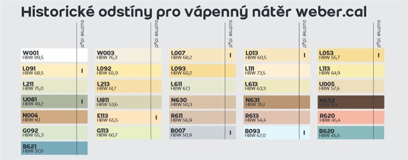 Tradiční vápenný nátěr pro vnější a vnitřní plochy na bázi vyzrálého hašeného vápna. Čistě minerální, bez přídavných látek a dodatečných pojiv. 39 historických odstínů.